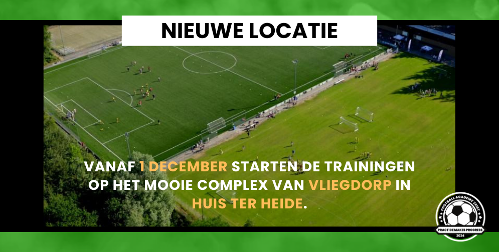 Nieuwe locatie; vanaf 1 december starten we bij v.v. ’t vliegdorp (huis ter heide)